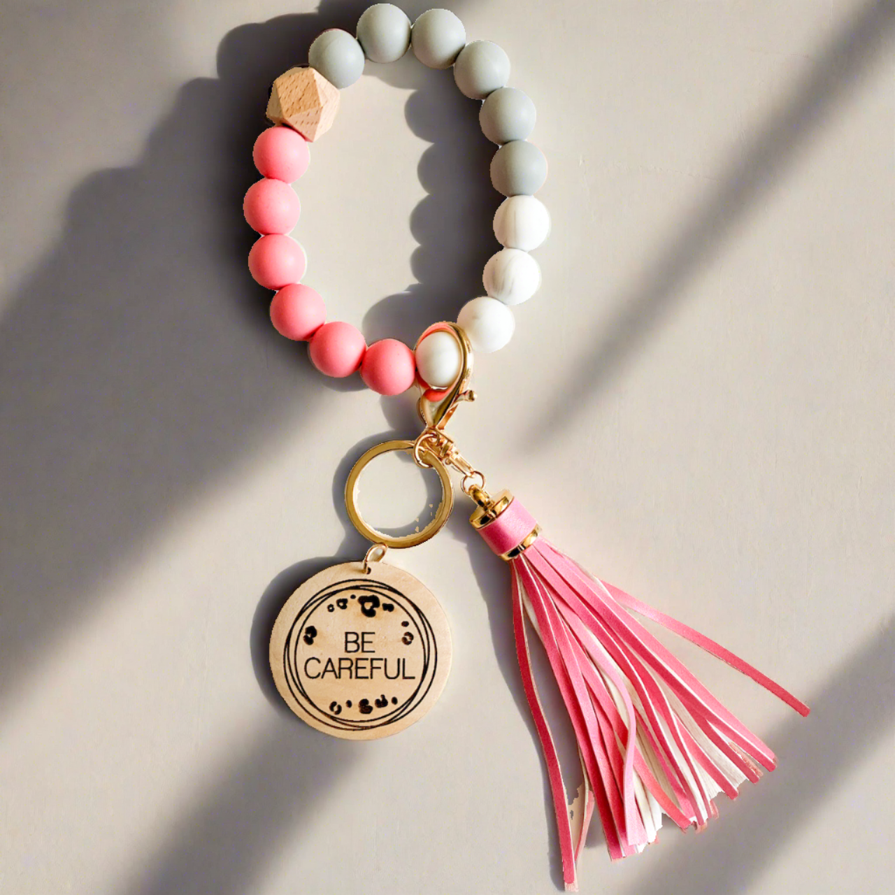 Need a cute wristlet to remind yourself or someone else to be careful? Our Be Careful Wristlet is the perfect item for you! Our wristlets are offered in a variety of colors and we can add your name to the other side of the wooden disk to customize the item for you!