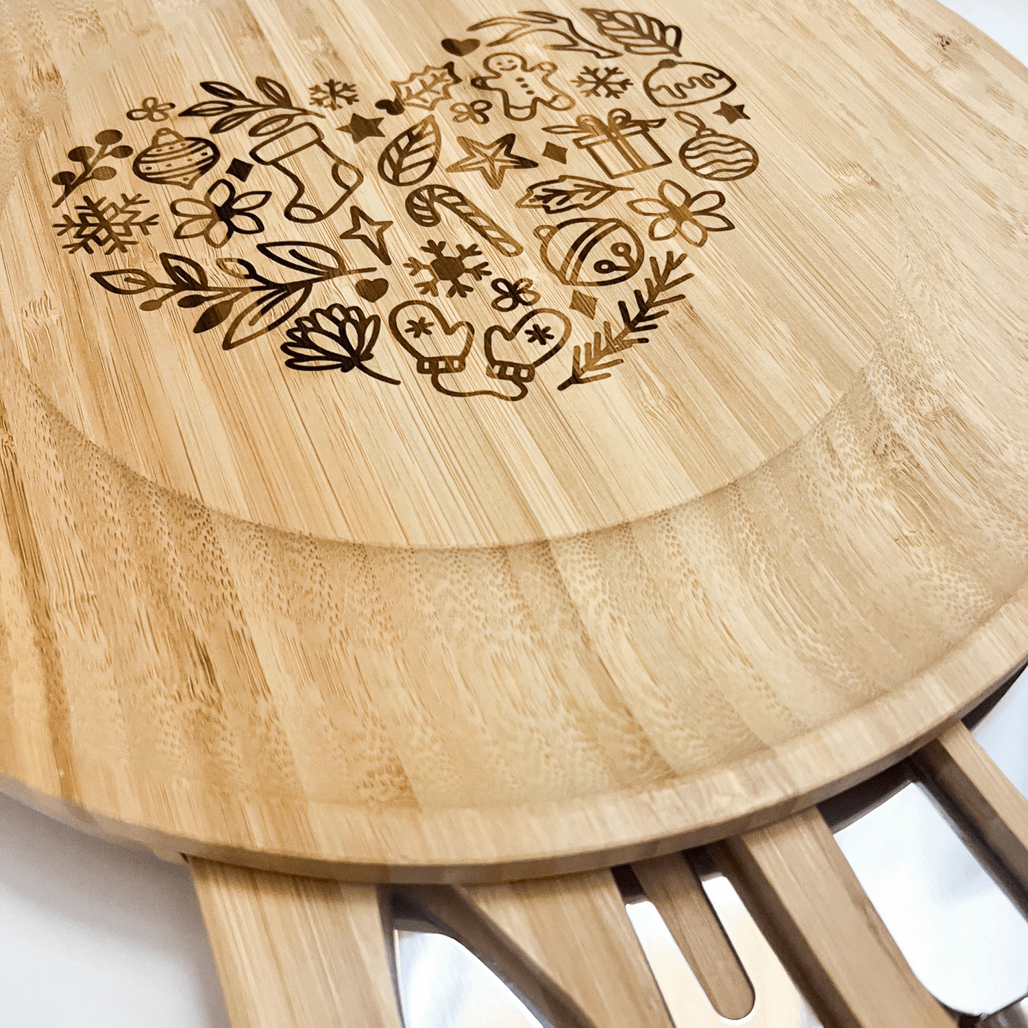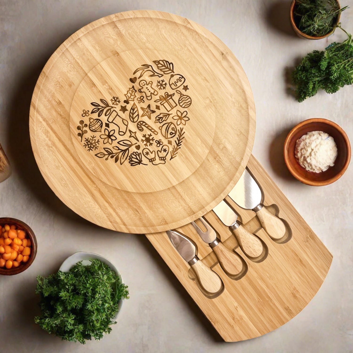 This Christmas Heart Charcuterie Board is perfect for giving your holiday spread a festive touch. Crafted of beautiful wood, the board features a charming heart design for an added touch of joy. With the included utensils, you'll have everything you need for a memorable charcuterie experience!