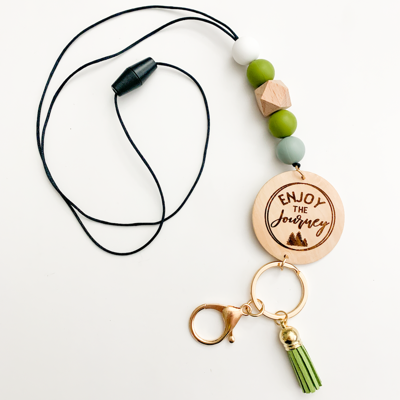 Don't forget to stop and smell the roses sometimes and enjoy the journey you are on! Our Enjoy The Journey Lanyard is the perfect way to remind yourself or that special someone in your life to do just that! Our lanyards are offered in a variety of colors and we can add your name to the other side of the wooden disk to customize the item for you!