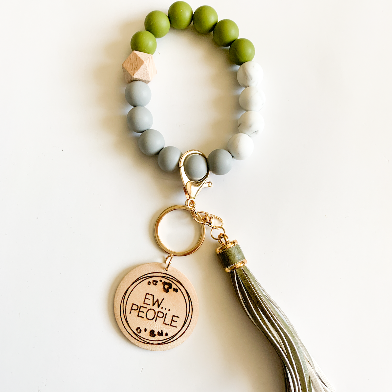 Don't we all have those days where we just want to say ew, people? Our Ew People Wristlet is the perfect way to tell someone maybe you just need some space for the day! Our wristlets are offered in a variety of colors and we can add your name to the other side of the wooden disk to customize the item for you!