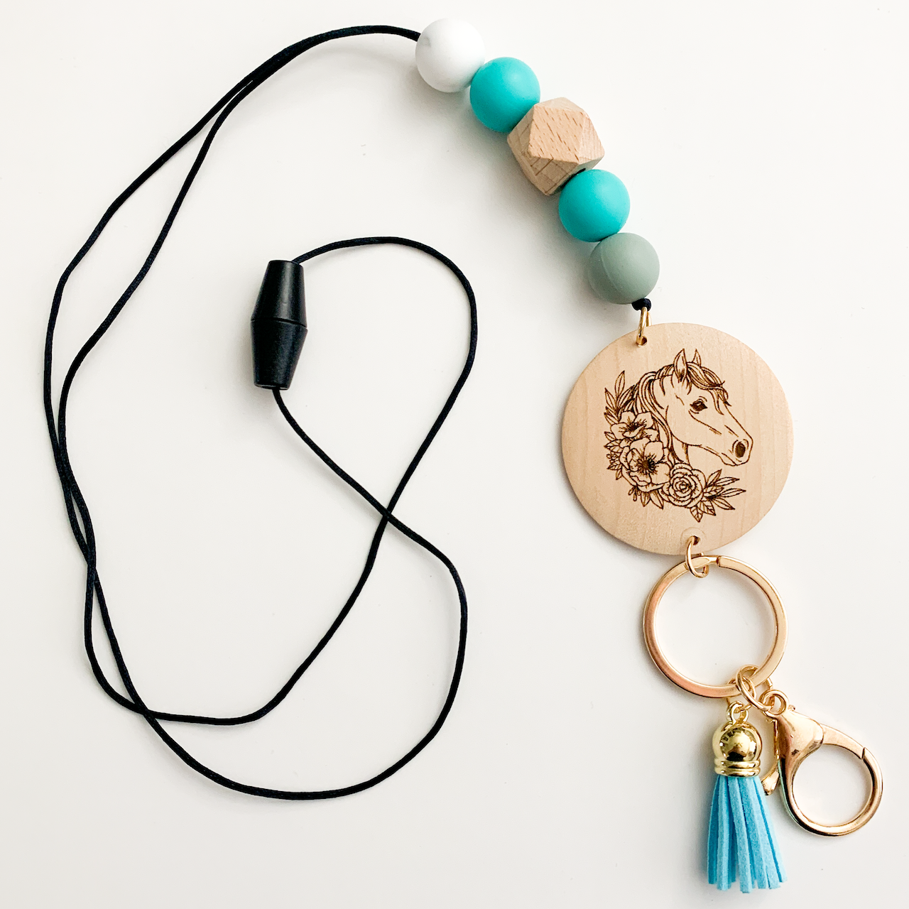 Have that special person in your life that loves horses? Our Floral Horse Lanyard is the perfect item for you! Our lanyards are offered in a variety of colors and we can add your name to the other side of the wooden disk to customize the item for you!