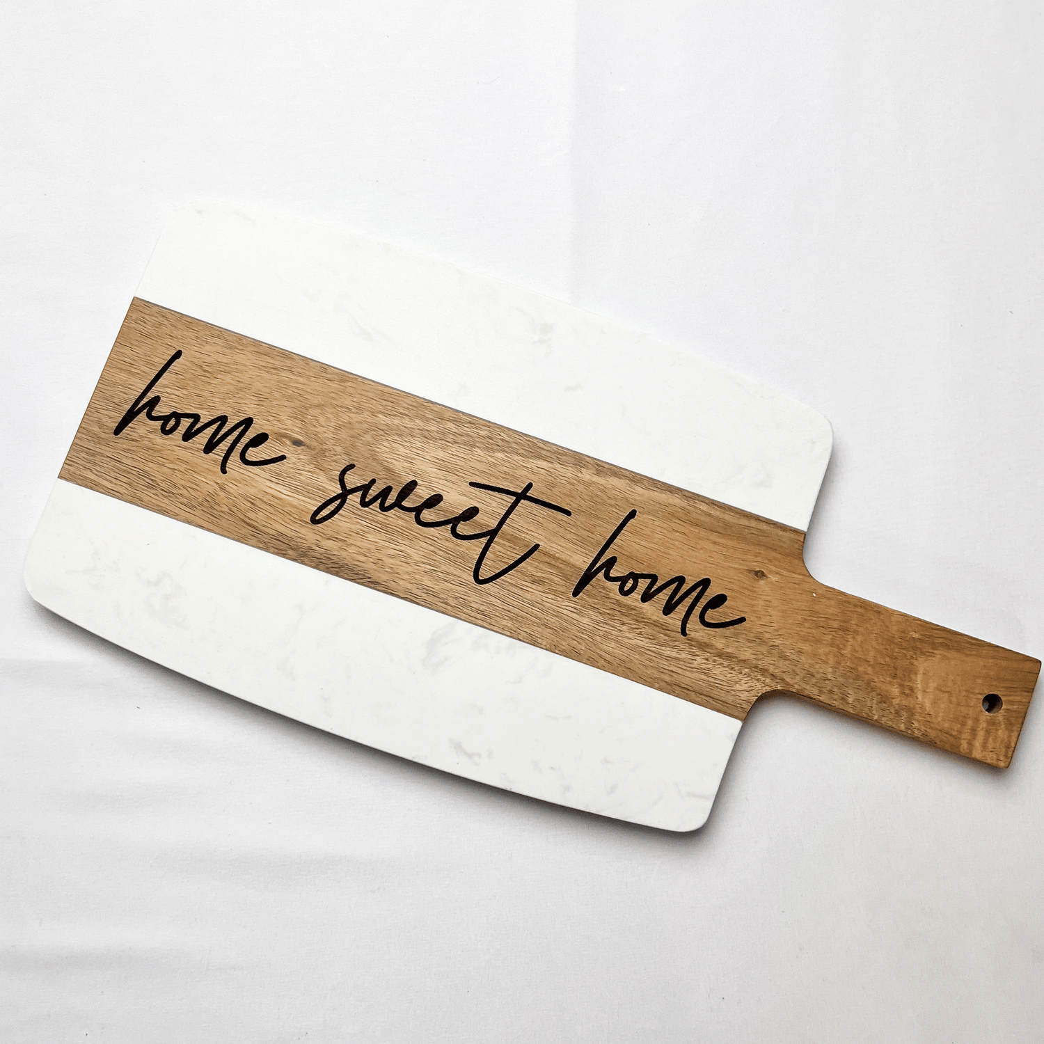 Add the perfect touch to your next gathering! Our Home Sweet Home Cutting Board is a fantastic touch to any kitchen! Use it for your next charcuterie board or just as a display piece, either way, this board will add that perfect touch for any occasion!