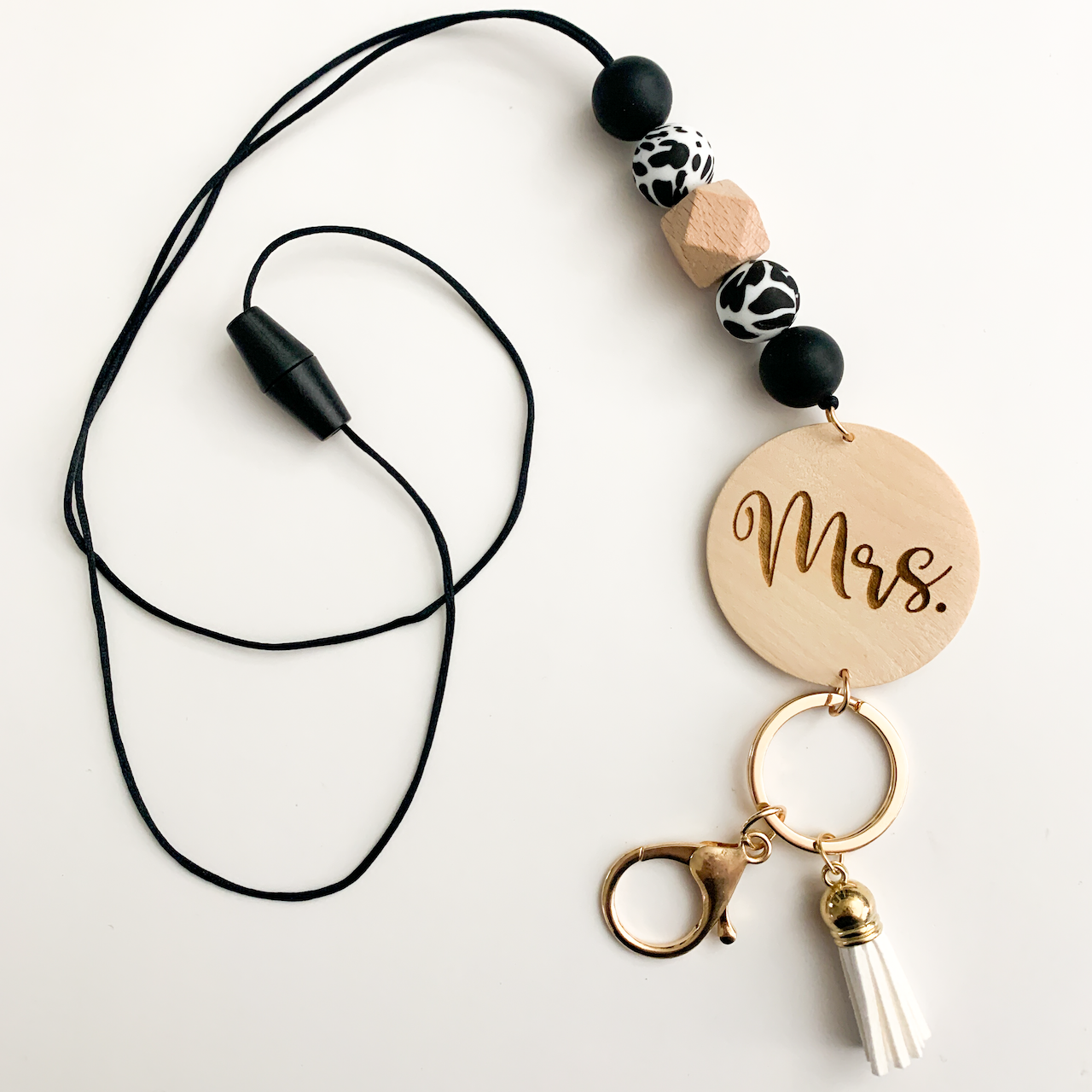 Looking for the perfect gift for that new Mrs? Or want to make sure everyone knows you're proud to be living that wifey life? Our Mrs Lanyard is the perfect item for you! Our lanyards are offered in a variety of colors and we can add a last name to the wooden disk to customize the item just for you!