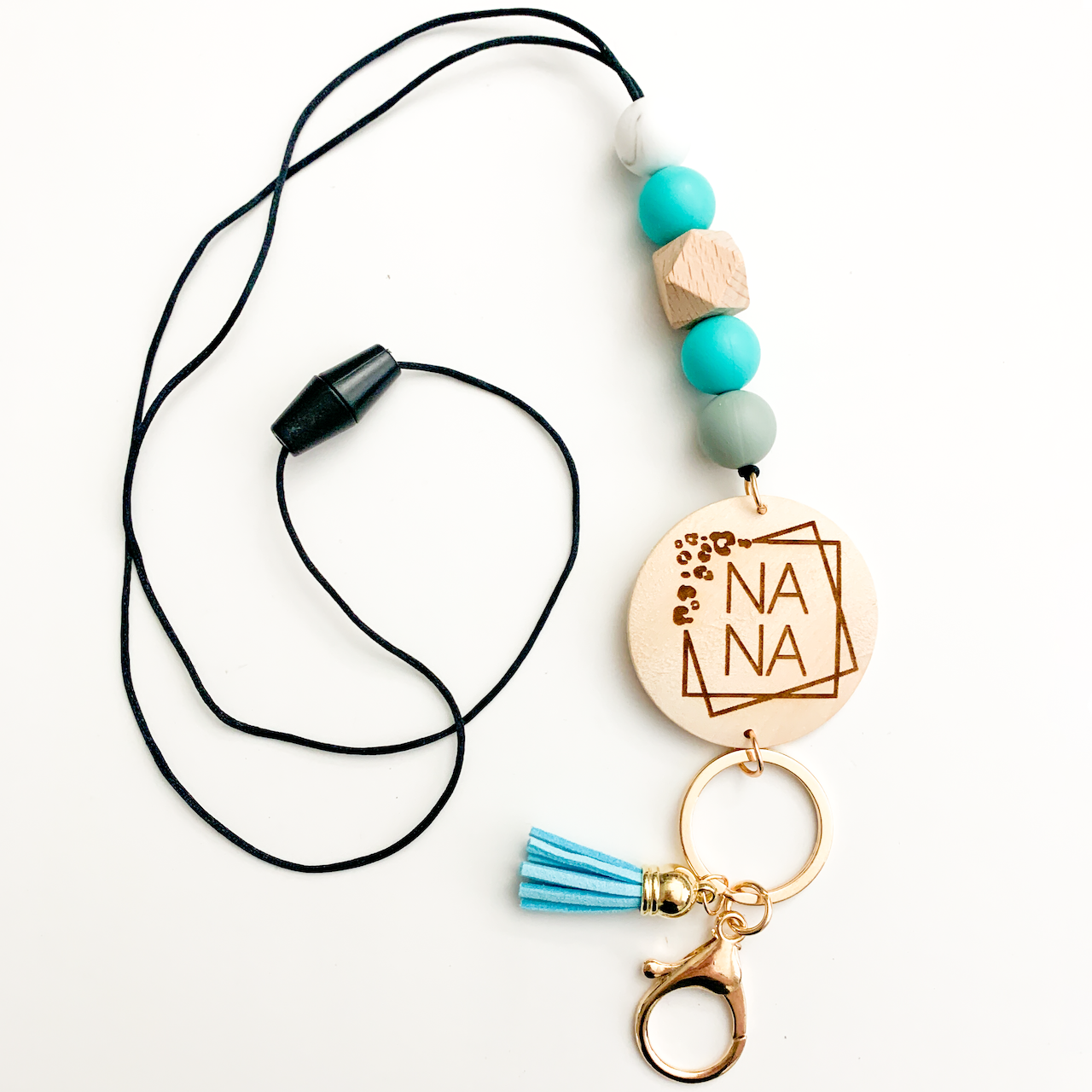 Are you out there living that Nana Life? Our Nana Lanyard is the perfect item for you! Our lanyards are offered in a variety of colors and we can add your name to the other side of the wooden disk to customize the item for you!