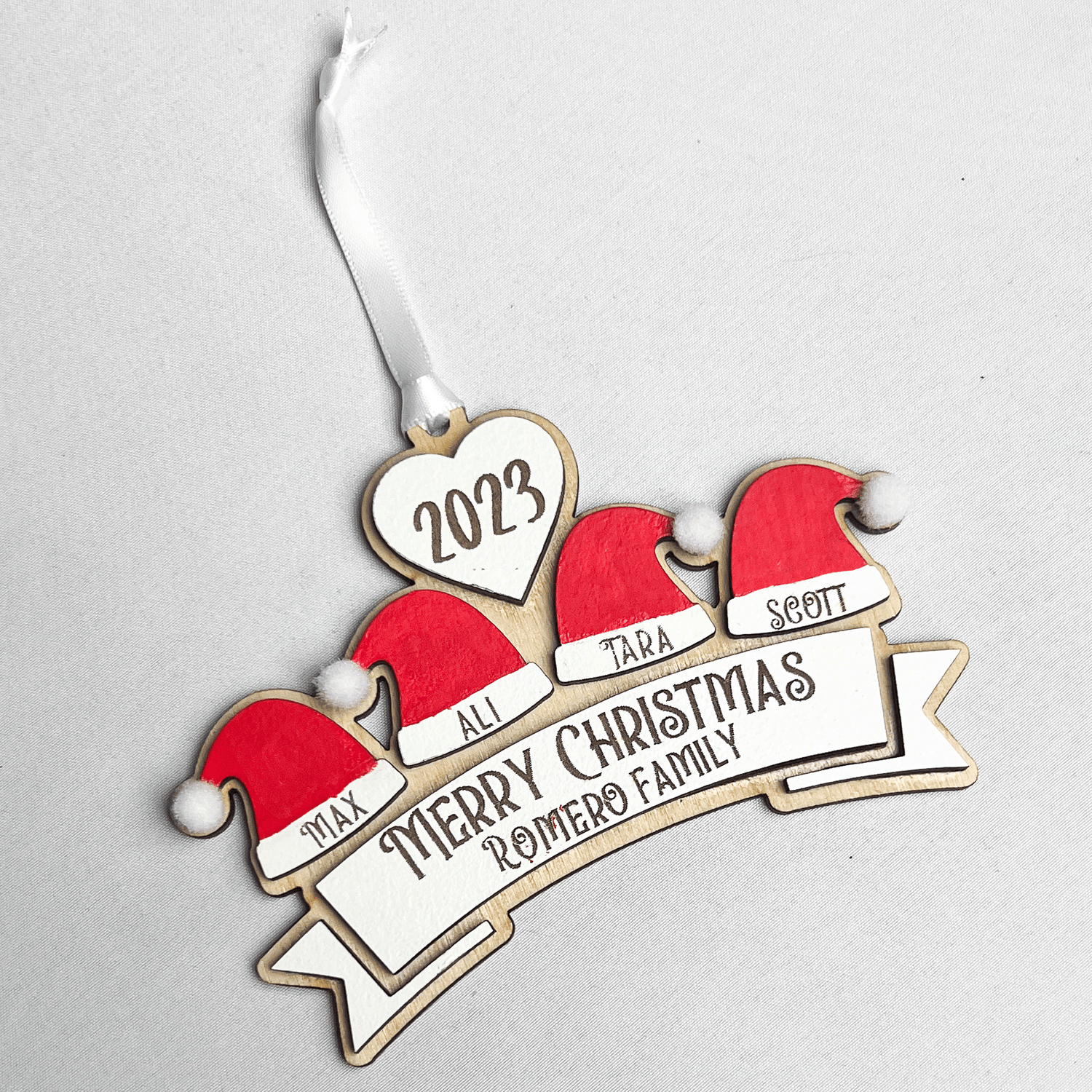 Don't we all love the yearly ornament showing how our families grow and change over the years? Our Santa Hat Family Ornament is a great option! Buy for yourself, a family member or friend, no matter who get's this will enjoy it for years to come! Our ornaments make great gifts as well!