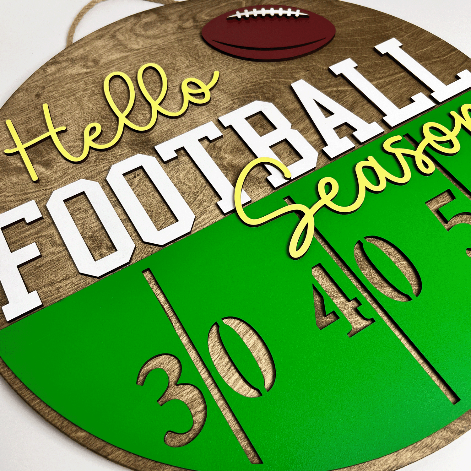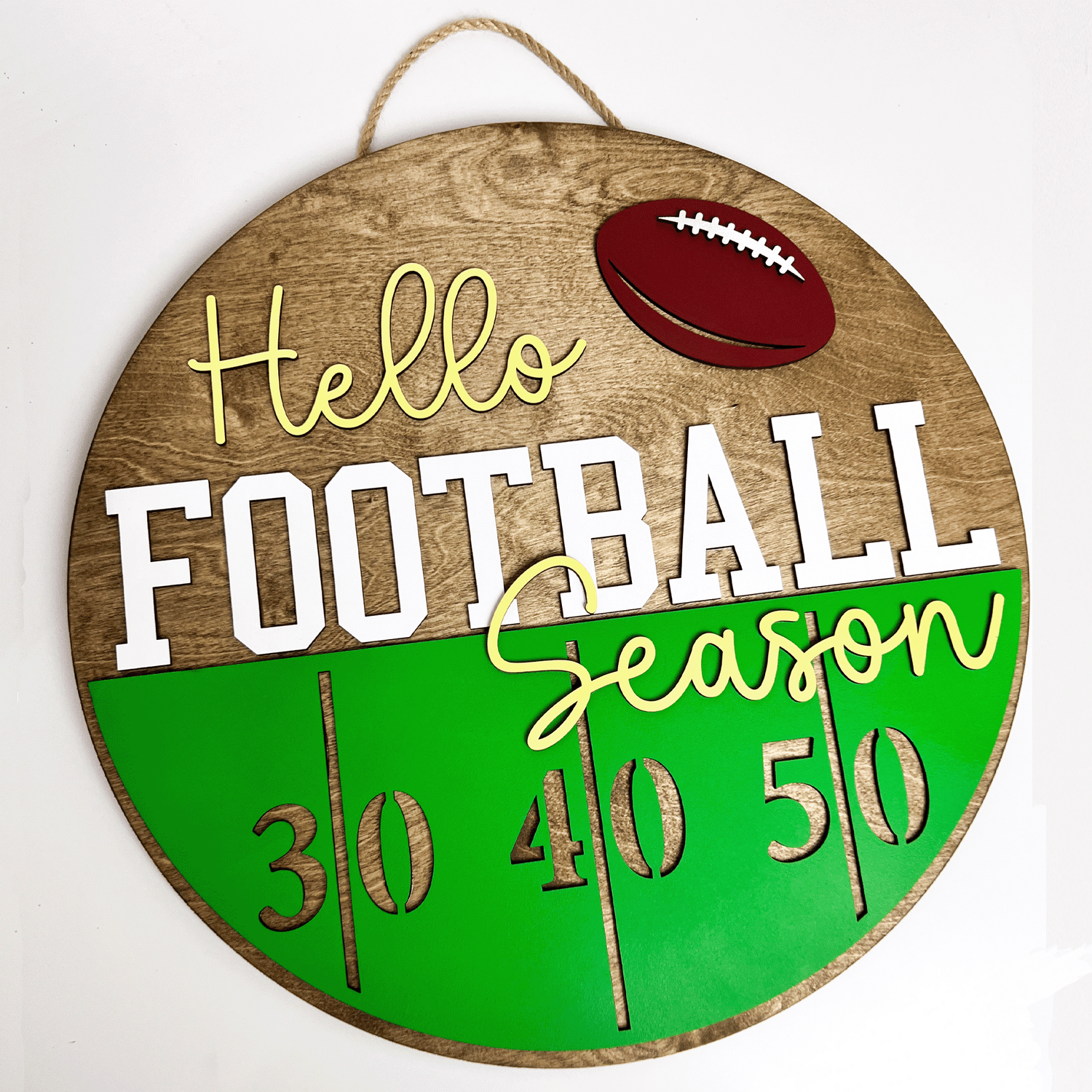 Welcome your guests with a touch of football flair with our Hello Football Door Sign! This charming door sign not only adds a playful touch to your decor, but also serves as a friendly greeting for all who enter. Perfect for football fans of all ages!
